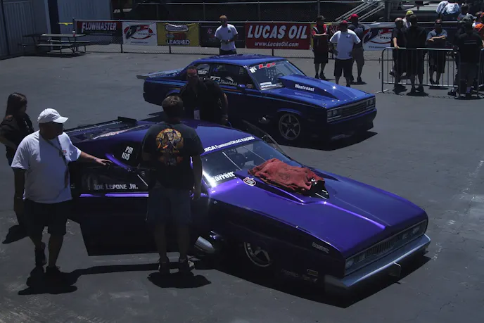 With Bowman’s entourage already lobbying the starting line staff for a Lepone DQ, the Duster slid into the beams, the tree dropped, and both lanes got the green, with a two-tenths reaction time advantage going to Bowman. Down track, Lepone closed the gap, running 6.230 to Bowman’s 6.610 and triggering the win light in his lane.