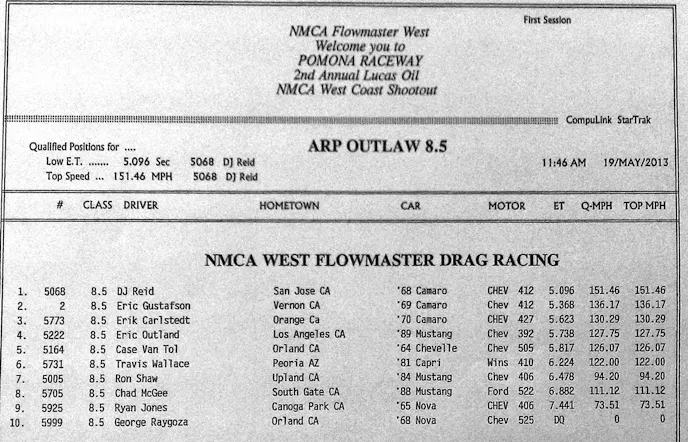 Yah, you saw that right – DJ Reid pulled off a 5.096 at 151.46 MPH in what was a 5.30 class… The rest of the Outlaw 8.5 field will have to find another half-second over the eighth mile if they want to hang.