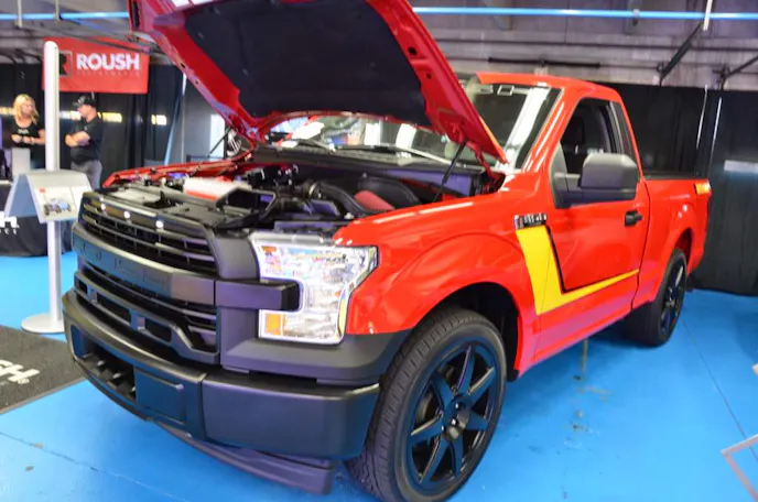 Well the folks at Roush took it upon themselves to fill that void with the company’s Nitemare F-150. While available in both two- and four-wheel drive as well as extended and crew cab, the version they had on display at the Auto Fair was just how we would order one. Built in the traditional Lightning styling, this two-wheel-drive, single cab pickup features a supercharged Coyote engine and produces 600 horsepower. What’s not to love?