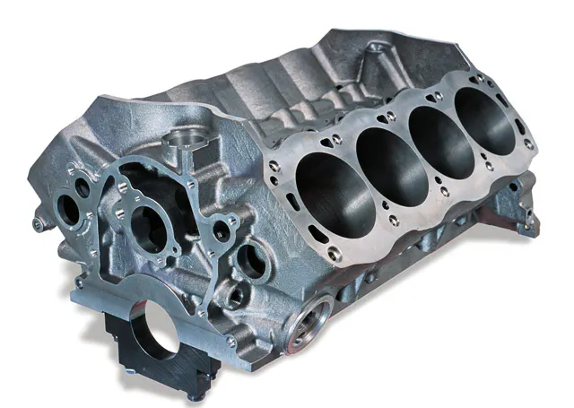 {ad:RMA}The heart of our build is Dart’s ultra durable Iron Eagle block. Dart offers this block. Going for maximum cubes, we selected the nine-five deck in a 4.125 bore. Dart recommends a maximum bore of 4.165, though you might not want to go that big if it is a forced induction application. Reinforced head bolt bosses are blind tapped to prevent leaks while extra thick decks prevent head gasket leaks. The block features Dart’s proven priority main oiling system that feeds the main bearings before being pumped to the cam. This system also promotes better oil pressure and does not need a high pressure pump. The bottom end comes with large journal, 351 Ceveland mains and splayed billet steel four bolt main caps. Dart also offers billet aluminum main caps as an upgrade.