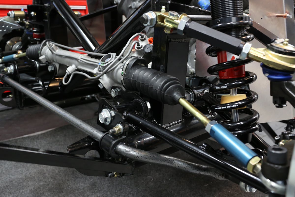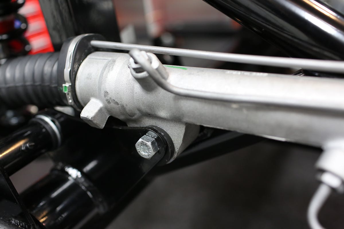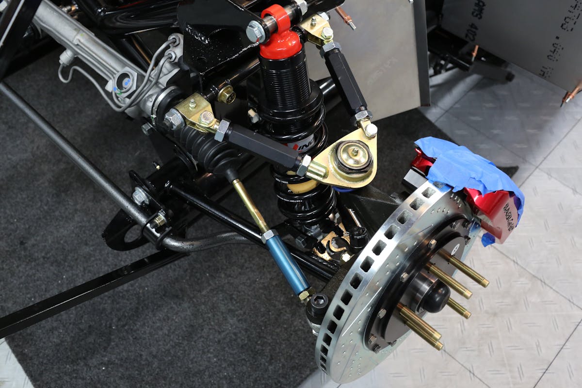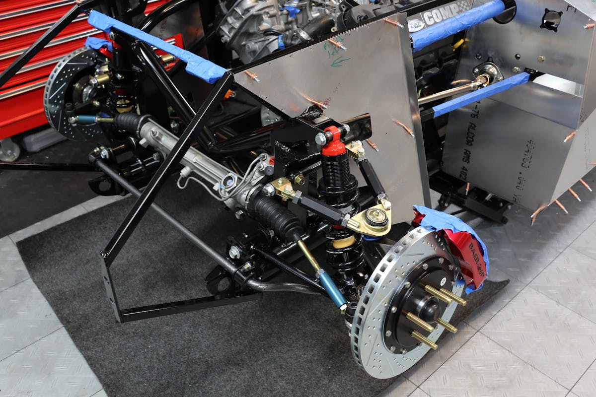 The basis of the project is Factory Five‘s proven MK4 Challenge series car. The Challenge kit differentiates itself from the standard Roadster kit mainly from its fully integrated, NASA legal cage. A robust halo bar is easily identifiable and from there, fully integrated door bars makes getting in and out of the car a little more challenging than a standard Roadster. A standard 3-link rear suspension and tubular front suspension are some of the additional items that come with the Challenge kit. We optioned a Street Completion package to make it road worthy, which consists of a second seat, carpet, and a windshield.
