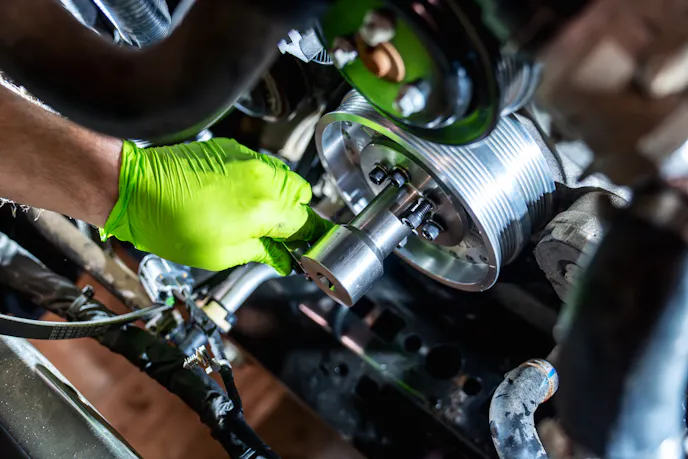 The Coyote 5.0-liter V8 thrives on airflow, and a centrifugal unit complements the engine’s high-RPM efficiency by building boost progressively in line with the factory powerband. In a full-size truck, that power curve is easier to manage than the instant torque hit of a positive-displacement blower because it reduces driveline shock, helps maintain traction, and keeps the chassis more composed as acceleration builds. Rather than fighting the power, the truck can apply it cleanly, especially after we enhance the suspension later on.