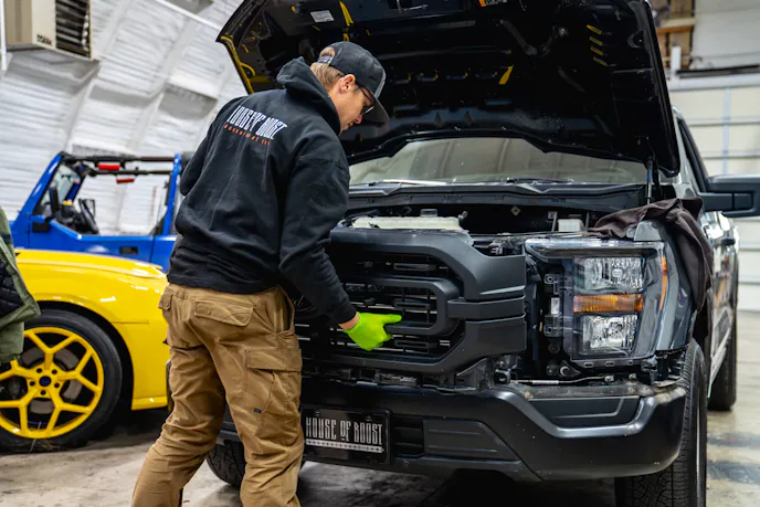 “Honestly, the engine side of things is pretty straightforward,” Radzins shared. “Most of the time is spent on the transmission side of the calibration to make sure the truck shifts lightning fast (right at 2 milliseconds) and still retains its torque management, so the trans will live a long and happy life. The ProCharger and the Coyote make it way too easy to make the horsepower.”