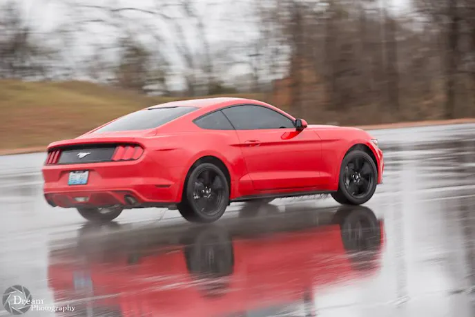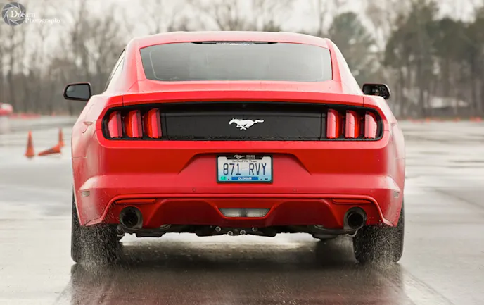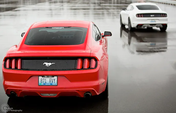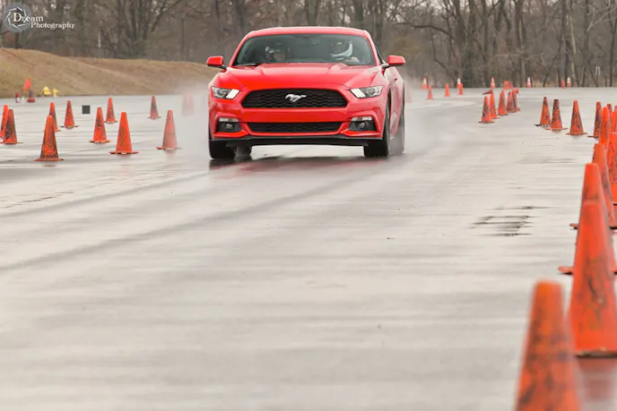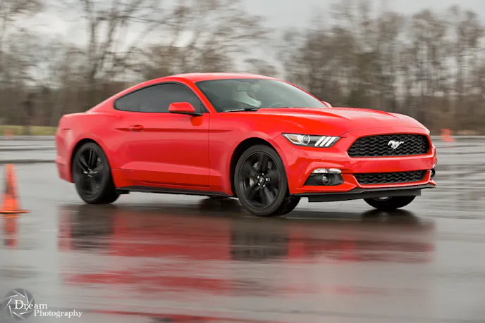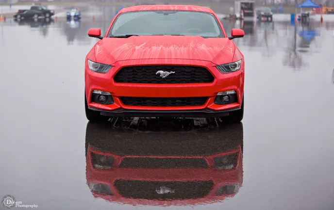 Autocross is a rain or shine event, and in-spite of the rain, instructors David and Jenny O’Maley assured us there was plenty of grip out there. We showed up with one of two Mustangs on hand for this school. The other, owned by fellow autocross noob Tim Hrastinski was a 2015 GT Performance Pack.