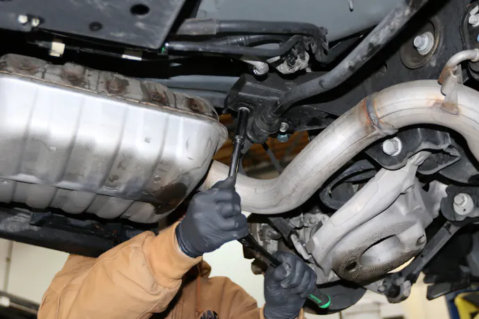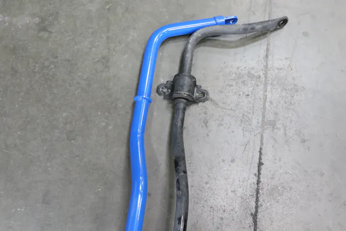 Our last item to address was the factory sway bars. Since Project Magneto is not a dedicated drag-race-only vehicle, we decided to leave the front sway bar on with future plans to remove it to see if we could feel a difference. We did however equip the rear with a Steeda drag race rear sway bar. This will keep body roll minimum, but will also make sure the car squats down squarely with the ground at takeoff.