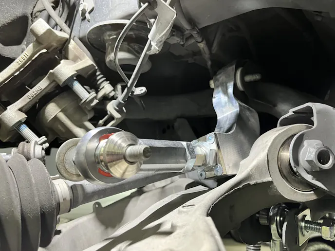 Under Cervenka’s guidance, we completed our kit with the additional subframe alignment kit. “On S550 Mustangs that are going to the drag strip, we like to run positive camber, especially with cars that are making 800 to 1,000 horsepower that are shocking the tires off the line. This is even true in automatic cars with a transmission brake,” Cervenka details. “The closer to 0 degrees of camber will get the maximum contact patch off the line.”