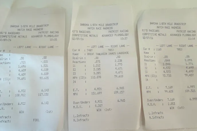 “Our best run of the day was a 6.92 at 108.90 mph in the eighth, which works out to roughly a 10.65 quarter-mile at about 136 mph,” Rice elaborated. “We tried raising the launch RPM on the next couple passes, and that actually hurt the 60-foot — the car clearly liked the softer leave. Even as track conditions fell off in the heat, the car ran flawlessly with crisp shifts and zero drama.”