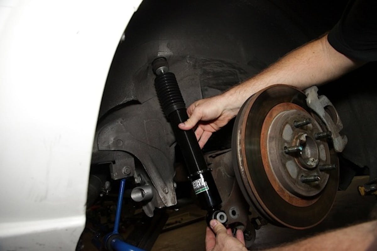 All of the parts Whiteline sent us for this installation were bolt-in ready, requiring no special tools to get them in place. We’ve outlined the highlights of this installation in the photos and captions here. Once everything is installed, the car must be set at ride height and the pinion angle adjusted properly using the eccentric in the upper control arm bushing and the adjustments on the lower control arms.