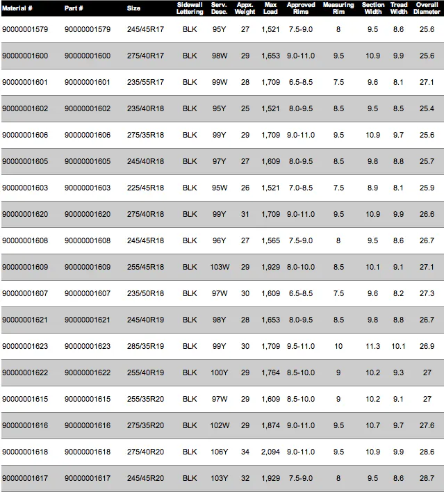 The outside tread features large shoulders which help maximize the tire’s cornering ability. The shoulder elements are tied together in pairs to improve traction, and stiffness. The wide circumferential grooves near the center of the tire improves wet traction, and avoid hydroplaning. At the same time the wide center rib improves steering responsiveness.