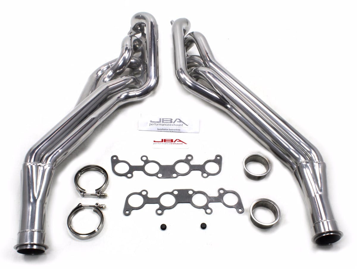 JBA is already offering long-tube race headers, Cat4Ward emissions headers, X-pipes, axle-back and cat-back systems. The cat-back includes a stainless steel 3-inch X-pipe system with 4-inch stainless steel tips. The 1 7/8-inch long tube headers are available in raw 409 stainless steel, ceramic coated, titanium coated or fully polished 304 stainless steel.