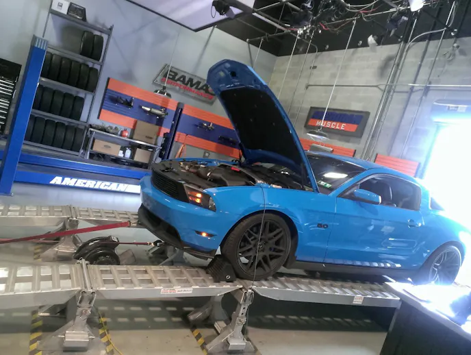 Then, we had BAMA Performance’s lead calibrator, Paul Meister, hook us up with a true BAMA custom tune written with Diablosport’s CMR tuning software. Rolling the dyno with his tune installed into the Grabber Blue GT netted final power numbers of 405.8 hp and 388.6 ft-lbs of torque at the wheels with the custom BAMA tune installed; massive gains of more than 40 hp and more than 45 ft-lbs over the completely-stock numbers of 364.6 hp and 343.4 ft-lbs of torque. Not bad for a cold-air kit and a tuneup.