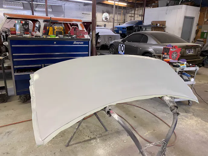 Our to-do list may have appeared straightforward to us, but we weren’t the ones doing the labor. Tim’s expertise was crucial for tasks like filling in and smoothening the wing mounts, the third brake light, and the keyhole from the trunk lid. Ironically, Tim still had a trunk lid that Ivan had donated to the body shop many years ago for a previous New Edge project. Additionally, we aimed to incorporate our Carter’s Customs hood vent in the center to maximize heat extraction. Beyond that, we needed to ensure that the hail damage, rust, and other imperfections were expertly smoothed out.