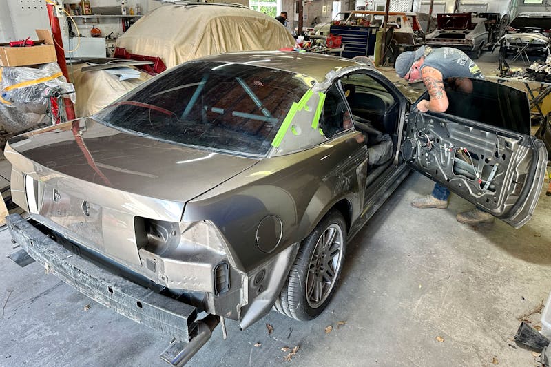 Before the concours restoration gurus chime in, it’s worth mentioning that this is a 2001 SVT Cobra that sees regular track use, rather than a race-heritage CSX-vinned Cobra. Our approach will be far from a frame-off restoration, but it aims to give our Mustang the same level of luster as its high-performance GT3 counterparts from Germany. This decision wasn’t due to a lack of effort or budget; it was driven by purpose. While a quick trip to a paint booth for a respray could have given us a shine for a limited time, we wanted to make our paint on par with the car’s performance. Taking it up a notch meant returning to the same place where Project Apex’s owner, Ivan Korda, had sent his original New Edge Mustang 15 years ago: Tim Urban of Alternative Koncepts in Seffner, Florida.