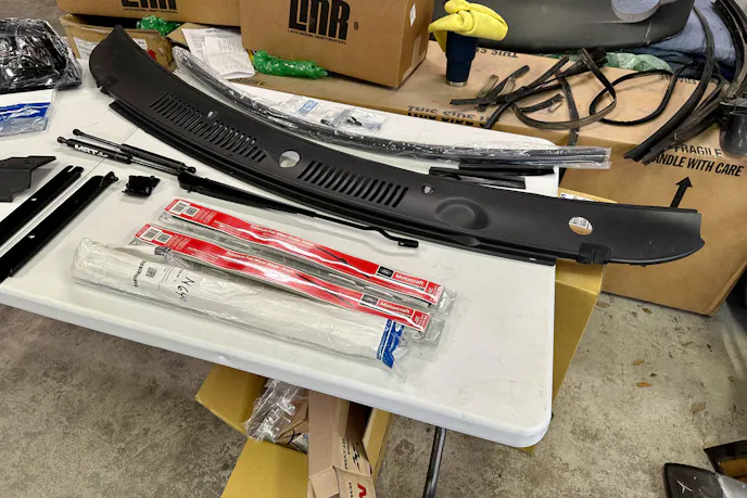 As anticipated, the majority of the black plastic on the exterior or in the engine bay has faded or cracked due to exposure to extreme heat. Fortunately, LMR had the products we needed in stock and ready to ship. What an amazing time to be alive! Some of us still recall posting “WTB” ads on forums in our quest to make our builds as pristine as possible. Thanks to LMR, we were able to source new headlights, fog lights, wiper cowl, hood struts, radiator cover, firewall-to-hood seal, wiper arms and blades, and even door weatherstripping by simply visiting their website. Everything fit with OEM precision and made our Cobra look twenty years younger.