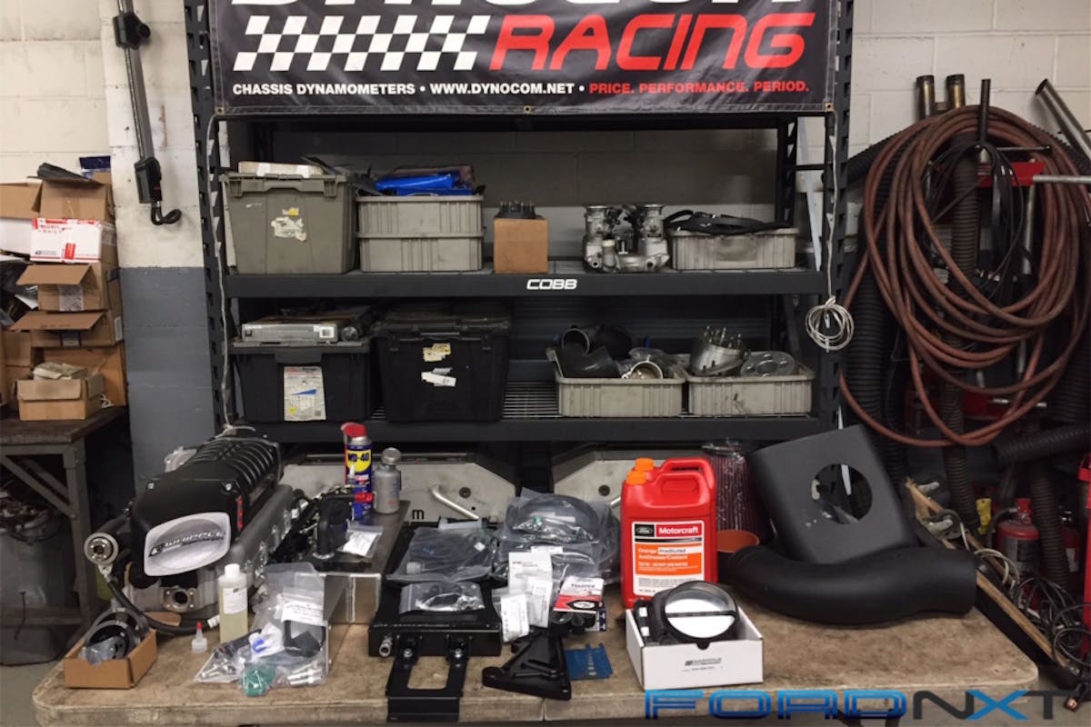 “On March 3, the local track in Atco opened, so I took the truck to the track bone stock with a full tank of E85 in it and ran 13.4 at 102 MPH. After that, I got with Ken Osborne of OZ Tuning and assisted in his 2018 F-150 calibration development running his beta ‘Omega’ tune. With only the beta tune while still on E85 I ran a best 12.7 at 108 MPH, after which I added a PMAS cold-air intake, a 2018 Mustang intake manifold, and American Racing headers with high-flow cats. But while working on dialing those mods in, the Whipple arrived, so I moved straight to the install.”