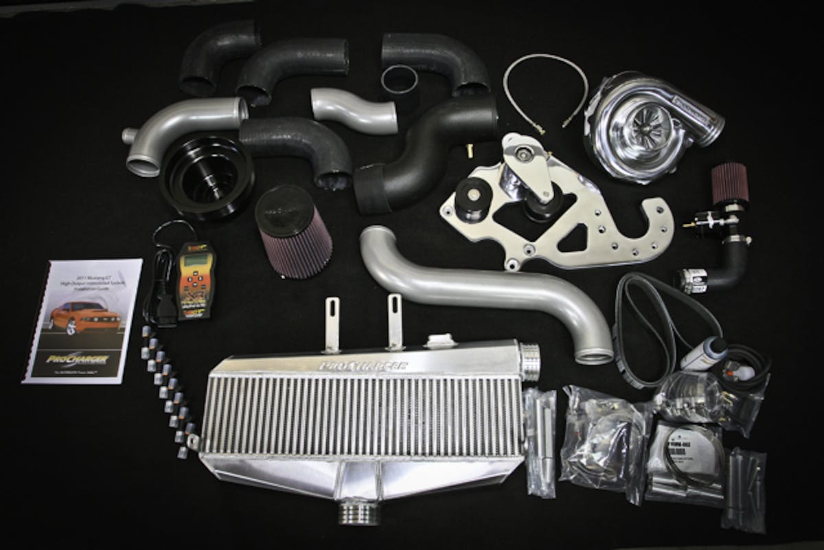 ProCharger has developed not one, not two, but three self-contained supercharger kits available for the 2011 Mustang. “All of these kits are built around our self-contained supercharger head unit and our effective air-to-air intercooling system that’s less complex and more efficient. As well, they also feature a dedicated drive belt system. No one else offers this kind of coverage; from an entry level kit with no trimming on up to a fully race-designed kit,” explained Jeff Lacina, Marketing Director with Procharger.