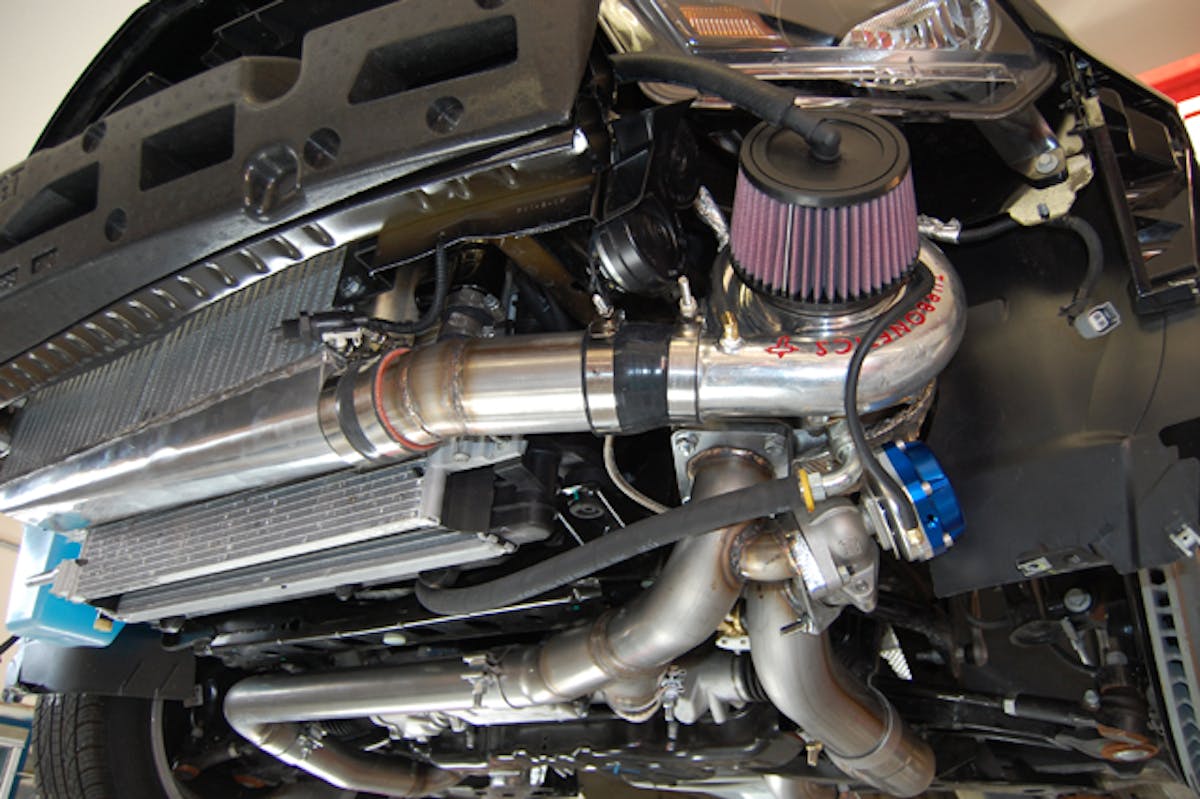 John Urist and the guys at Hellion have installed the kit on two cars thus far in its development, one those an automatic-equipped ride (pictured) belonging to former NMRA racer Matt Case, which has pulled 520 horsepower to the wheels and 600 at the crank on 6 pounds of boost.