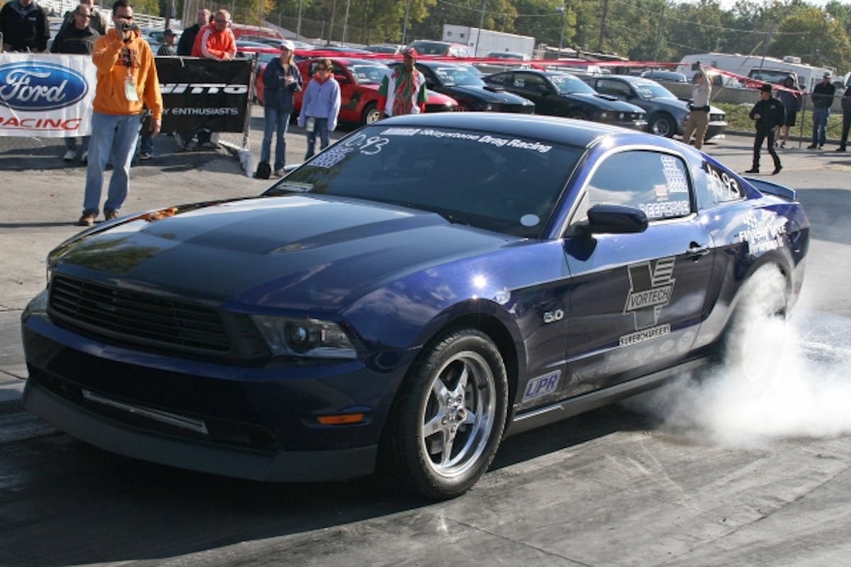 John Starkey and wife Rebecca of VMP Tuning in Florida have outfitted their automatic-equipped GT with a RoushCharger tuner kit coupled with a smaller pulley and custom calibration to produce over 550 horsepower at the wheels. Together with some minor modifications including aftermarket exhaust, lower controls arms, and drag radials — the Mustang blasted out a best of 10.61 at 130 MPH at the NMRA Finals in Bowling Green.