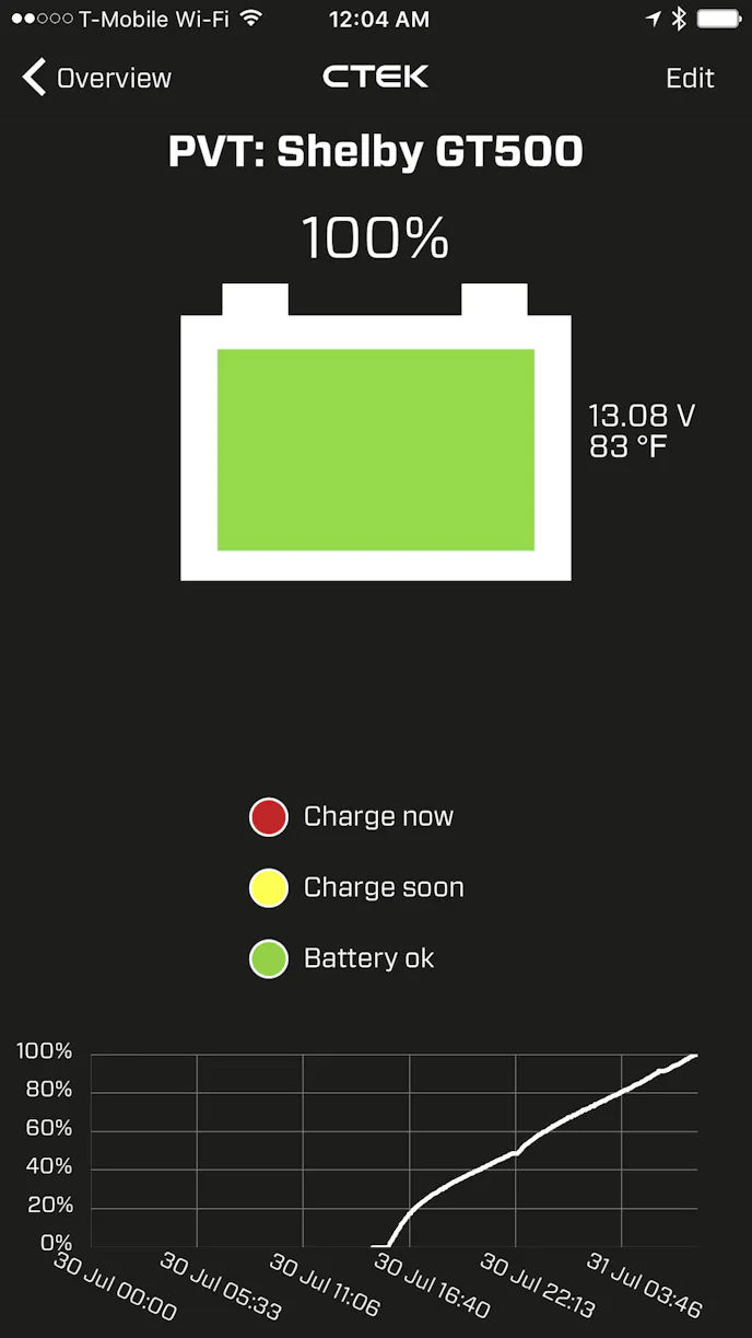 Within a day our Optima was back up to 100 percent and we can rest assured it will stay charged when the Shelby is off duty, now that it has a dedicated smart charger and an easy way to keep tabs on the voltage.