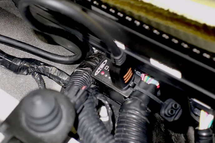 The Comfort indicator panel includes wires long enough for you to find a subtle mounting location. If you want to get fancy, you could cut a small hole or find an existing one in the sheetmetal, but we opted to nestle it into the factory fusebox wiring harness under the hood.