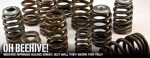 Beehive springs, such as those offered by COMP Cams, offer a huge number of benefits over stock-style cylindrical springs; reduced valve spring mass, faster valve acceleration, increased valve train rigidity, reduced valve train component stress and a whole laundry list of other positives.