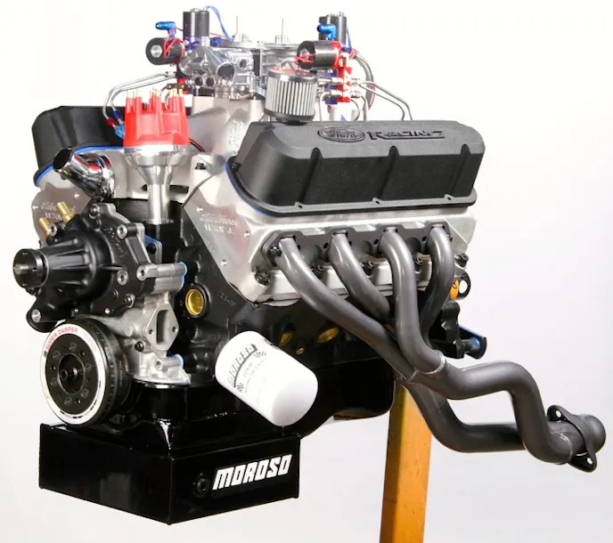 That color scheme led to Proform‘s Ford Racing valve covers (PN 302-135), which are coated in a black wrinkle finish. Proform sells quite a few different black cover styles as well, including a faux-carbon fiber and smooth black finishes and is one of the few aftermarket companies licensed to use the official Ford logo.