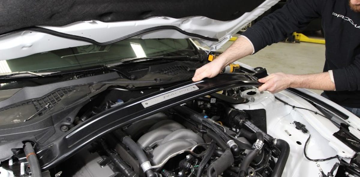 Get started by removing the factory airbox and strut-tower brace to make way for the supercharger system.
