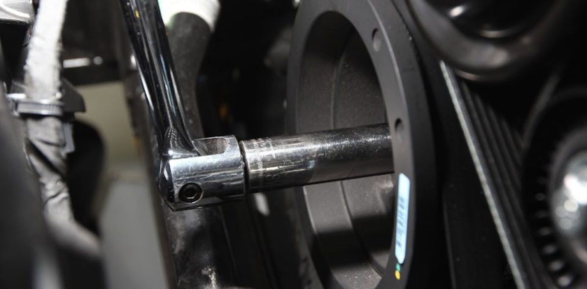The ProCharger kit utilizes its own eight-rib belt drive for the supercharger, which requires adding a pulley to the factory crank damper. The company created this add-on pulley, which installs on the factory damper via longer damper bolt and a series of cam locks. If you are running one of ATI’s SFI-approved dampers, the ProCharger unit bolts on. Either way, you will have to remove the sway bar mount bolts and slide the sway bar out of the way to gain enough access for the install.