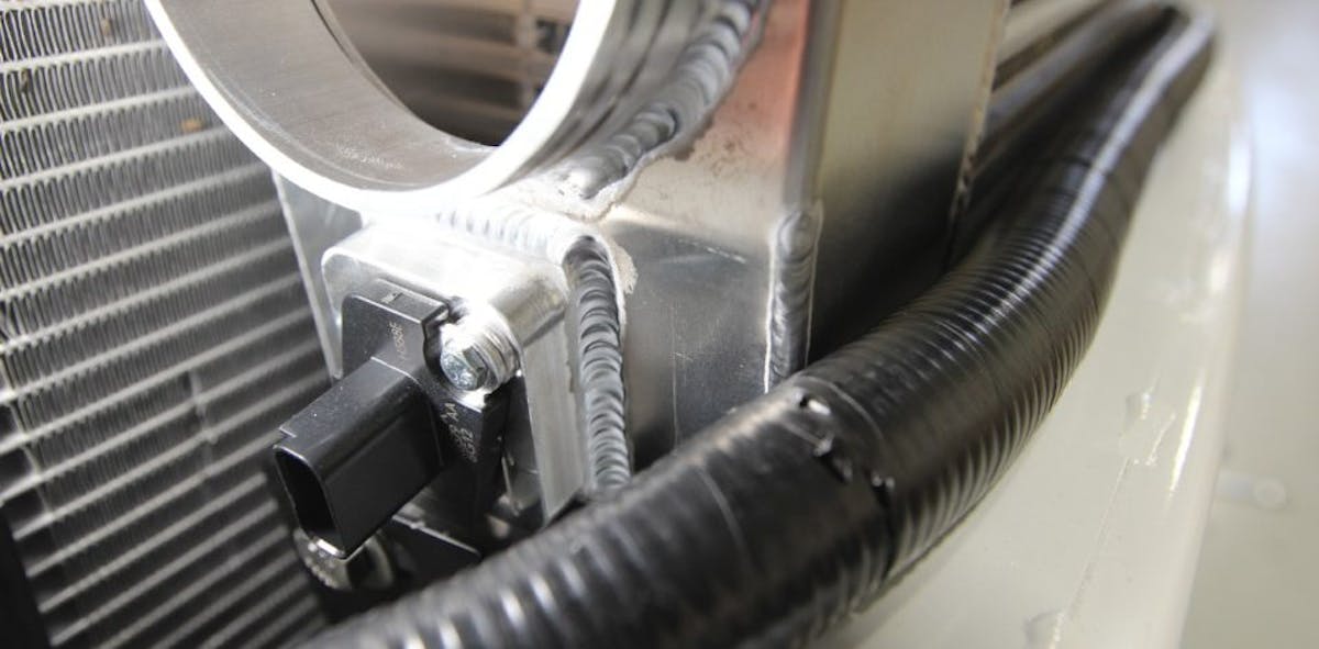 Routing the inlet and discharge tubing is a straightforward process of snaking in the tubes and hoses and clamping them into place. The bypass valve and air filter are tucked away inside the front bumper. Placement of the filter there lets the system draw in ambient air away from the hot engine compartment.