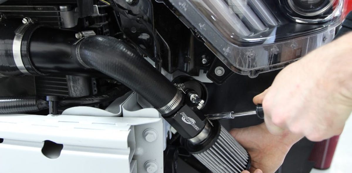 A signature of ProCharger kits from the jump has been the inclusion of an intercooler to lower the blower discharge temps before the air enters the engine. This allows for more power and reduces the chance for detonation. The intercooler bolts on using factory mounting points, and only requires tweaking a wiring harness location for additional clearance. ProCharger includes an extension harness to facilitate relocating the mass air sensor to the intercooler.