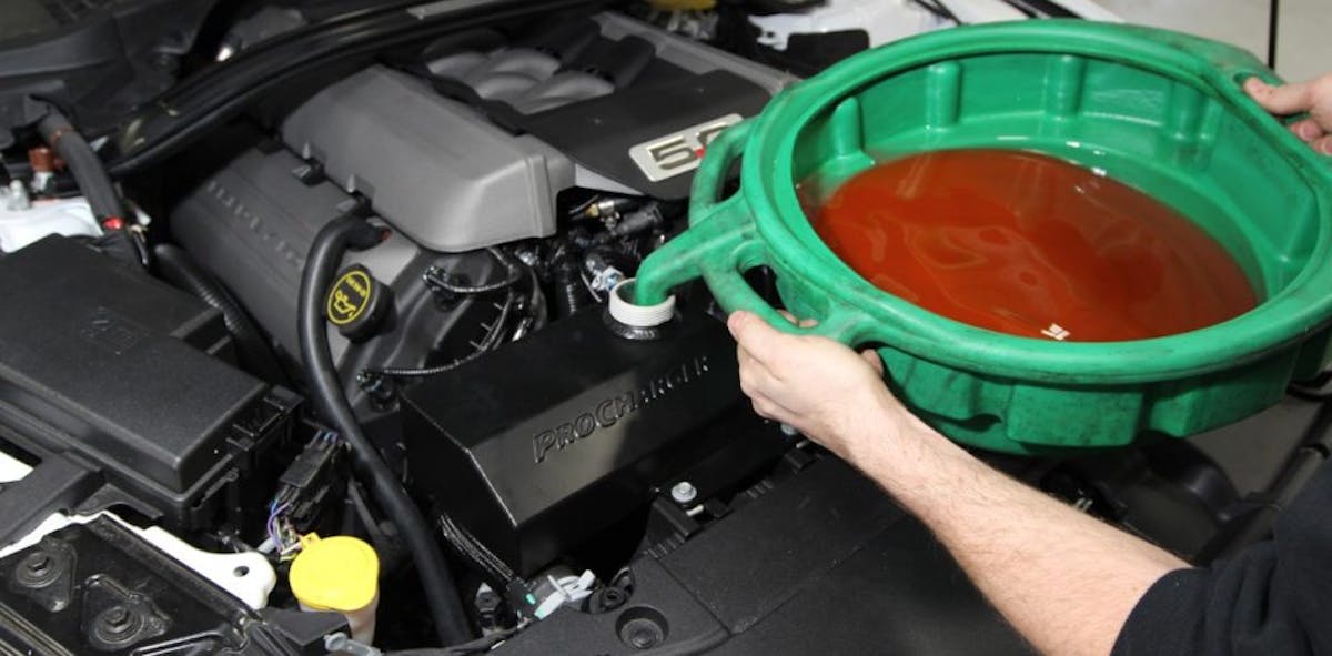 Before you drive your boosted ’Stang, you’ll want to swap out the factory plugs in favor of a fresh set that are one heat-range colder than stock and gapped to .035-inch. You’ll also need to drain the coolant so you won’t make a mess with the new thermostat housing.