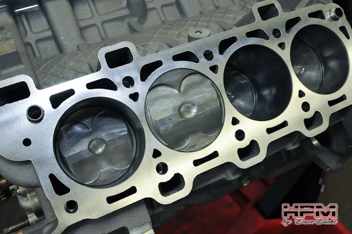 PAE started with a 5.2-liter aluminum Voodoo block identical to the ones used in factory builds of the GT350 and GT350R (PN M-6010-M52). Compared to the standard 5.0-liter Coyote block, this high-performance casting offers improvements to support high-horsepower engine builds, like updated water jackets with more material below the cylinder bore to increase the block’s strength and liner coating that provides improved durability, more efficient heat transfer, reduced friction, and weight savings versus the Mustang GT block.