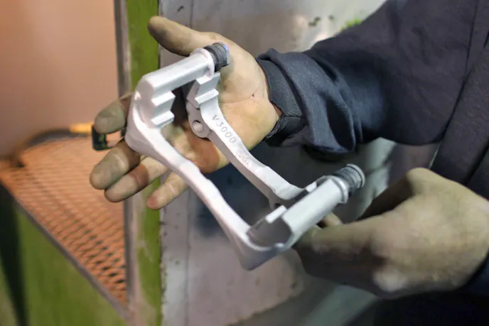 Like the front, the existing rear caliper brackets were sandblasted and painted black before being mounted, along with the relocation brackets. Ensure the engraved part number of the relocation brackets face inward towards center of car and are torqued to 85 lb.-ft. The existing stainless pad hardware got the wire brush treatment before calipers and rotors were mounted. All four wheels were torqued to 100 lb.-ft. and voila!