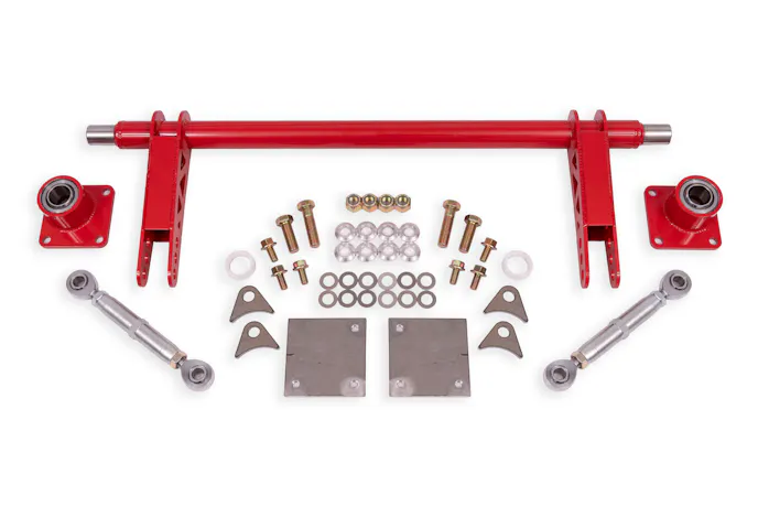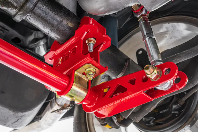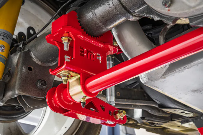“The deflection of stock style rubber bushings and control arms in conjunction with a poorly mounted stock sway bar do very little to alleviate wheel hop and body twist,” Greg Ionadi, Product Design Engineer at BMR Suspension, explained. “Any live axle vehicle is going to have some body twist associated with hard launches. An anti-roll bar uses a large diameter tube that links the axle to the frame. It allows the suspension to travel up and down without one side of the suspension compressing more than the other.”