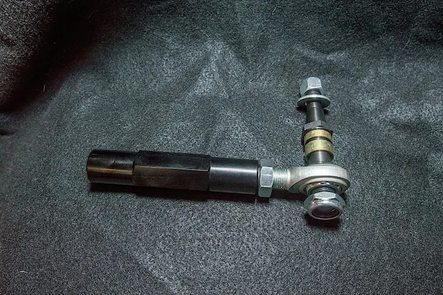 The Competition Engineering Bump Steer Kit, part number C2408 takes the place of the outer tie rod ends on the steering rack. The kit includes an aluminum adjusting tube made from 6061-T6 aluminum, which is anodized to resist corrosion. A 5/8-inch rod end attaches to that adjusting tube and supports a tapered bump steer stud which accepts spacers to allow for proper adjustment.