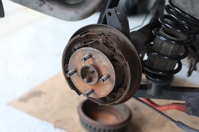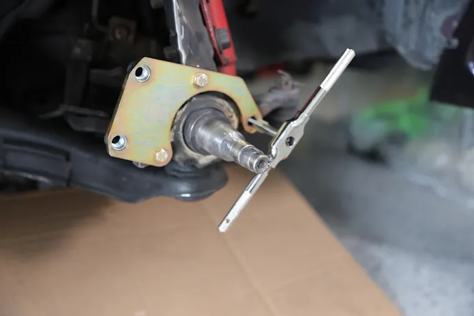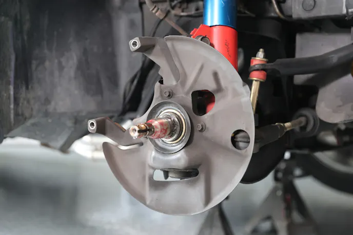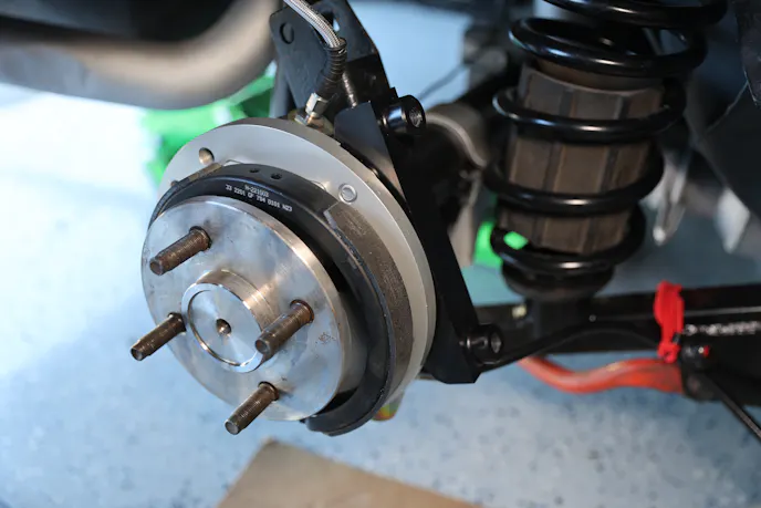 With the wheel, caliper, and pads out of the way, it was time to remove the disc brake rotor. After removing the 1 ⅛-inch spindle nut and the three ⅜-inch bolts holding the dust shield, I was finally down to the real heart of the project — the spindle. Since I’m sticking with the stock four-lug front disc brake system, one crucial step stood between me and installing the beefier EradiSpeed rotor and six-piston caliper: cutting and modifying the spindle to clear the way for the upgraded components.