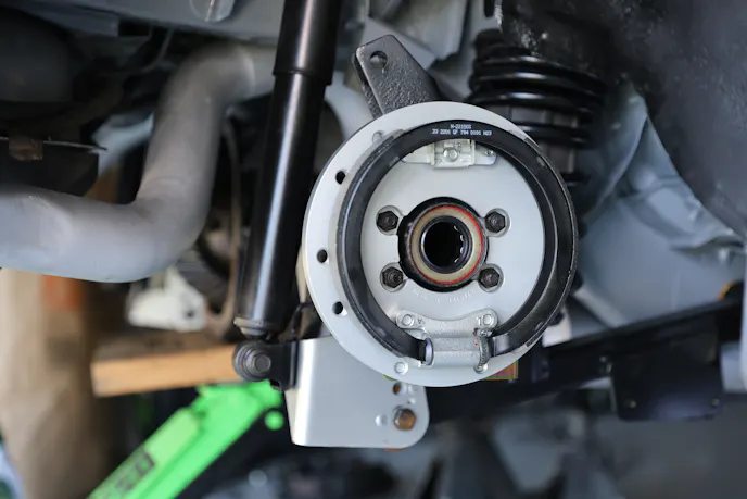 But then I had a bit of rethinking at this point. As I was just about the start the new rear brake installation, it hit me: why not pull the entire rear differential assembly out, clean it up, throw a coat of paint on it, and then toss in some fresh bearings, seals, and new axles, then clean up the underbody while I’m at it? So, I did just that. But for the sake of this article, I’ll spare you the details of that lengthy process and jump straight to the completion of the brake install. You’re welcome!