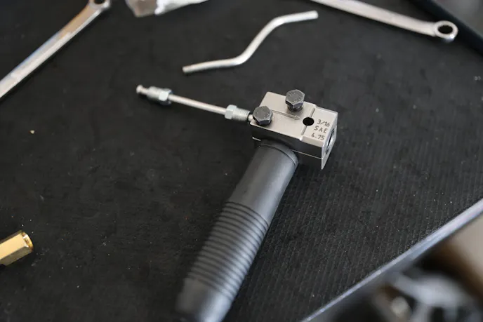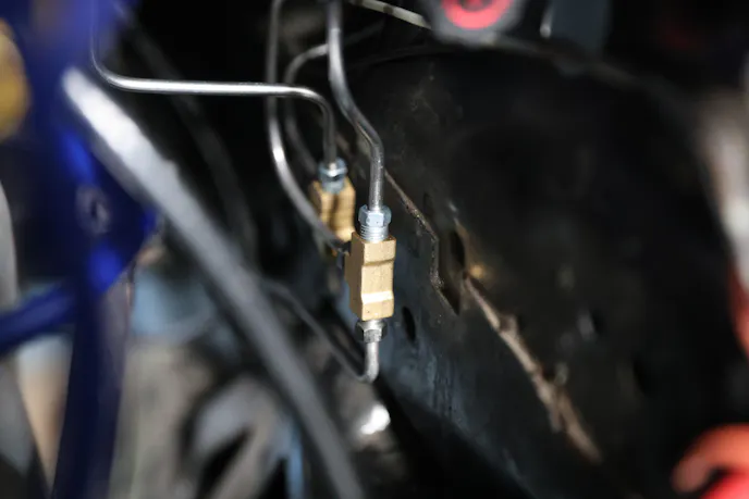 After flaring the fitting with a double invert and matching the new 3/8-24 pitch threads of the Baer proportioning valve, I was able to adapt everything seamlessly. It took some extra effort, but the result was absolutely worth it. With that last piece in place, the brake system was officially upgraded and ready for action.