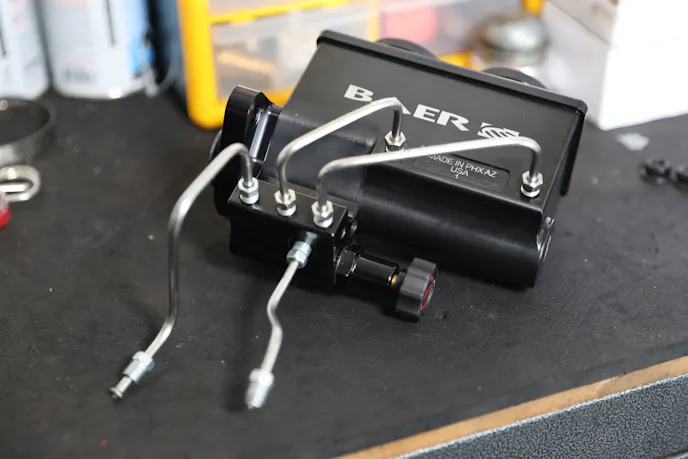 Wrapping up the project meant tackling the master cylinder. This was the last hurdle, and it came with its own set of challenges. The factory brake system used a proportioning valve with various thread fitting sizes that wouldn’t bolt onto the new Baer valve that required 3/8-inch x 24 thread fittings. So, to make it all work, I had to get a little creative. I picked up some stainless steel brake lines and brass T fittings and cut off the factory lines leading to the valve. After flaring the new stainless steel lines to match the 3/8-inch x 24 thread fittings of the proportioning valve and T fittings, everything adapted seamlessly. The reason for using the stainless steel lines is not only to prevent corrosion and ensure long-term reliability,