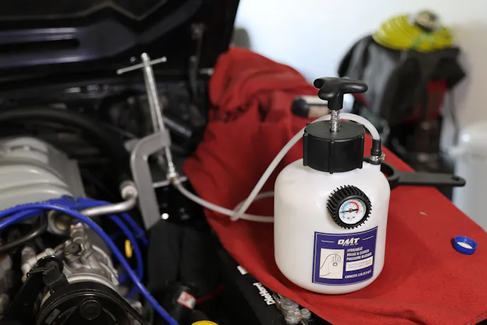 But wait… there’s more! The final step was bleeding the brakes. I wasn’t about to let something this simple slow me down, so I took it on single-handedly with an Orion Motor pressurized brake bleeding kit. The process wasn’t too complicated, but it did take a few rounds of cracking open the bleeder valves, working my way around the car from the rear drivers, and in a circle around, while carefully monitoring the tank fluid levels.