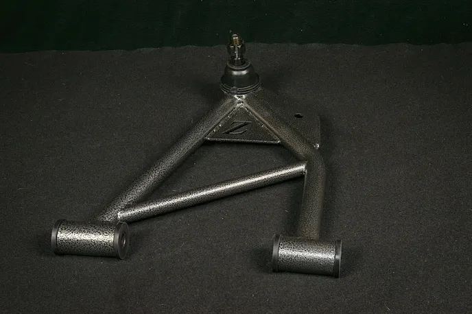 The Auto Cross kit comes with Team Z’s Auto Cross front A-arms. The A-arms are made from 1.125-inch 0.95-inch wall 4130 chrome-moly steel. They are double gusseted for improved strength and feature heavy duty bushings with 4130 inner sleeves. The bushings are a derivative of the ones Team Z uses in their Street Beast line of rear control arms. “That bushing is very stiff, and will give minimal deflection,” says Zimmerman. All of the welds on the control arms are TIG welded.
