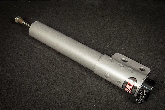 Our double adjustable struts feature 18 settings for both compression and rebound. They can be adjusted for anything from comfortable cruising, to maximum weight transfer in drag racing, to corner slaying tight. The total number of possible permutations of these is 324 unique settings. This means that we can, with certainty, adjust the front suspension to our exact needs or taste with the simple turn of the dials.