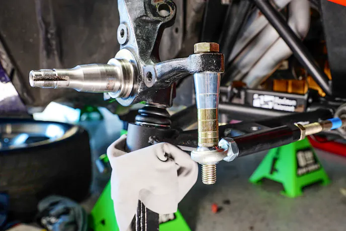 Moving onward with the spindles bolted back on, I added the necessary bumpsteer spacers, lined up the tie rod ends parallel with the lower control arms, and I was ready to move on to installing the Koni struts and coilovers. Though take note that the final bumpsteer alignment needs to be properly adjusted once everything is back together.