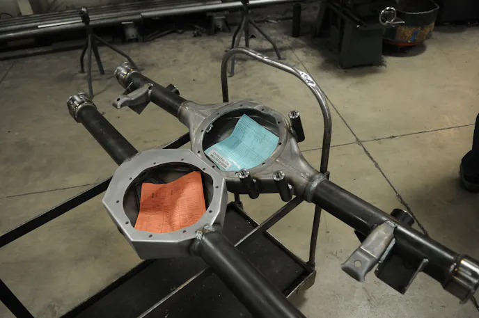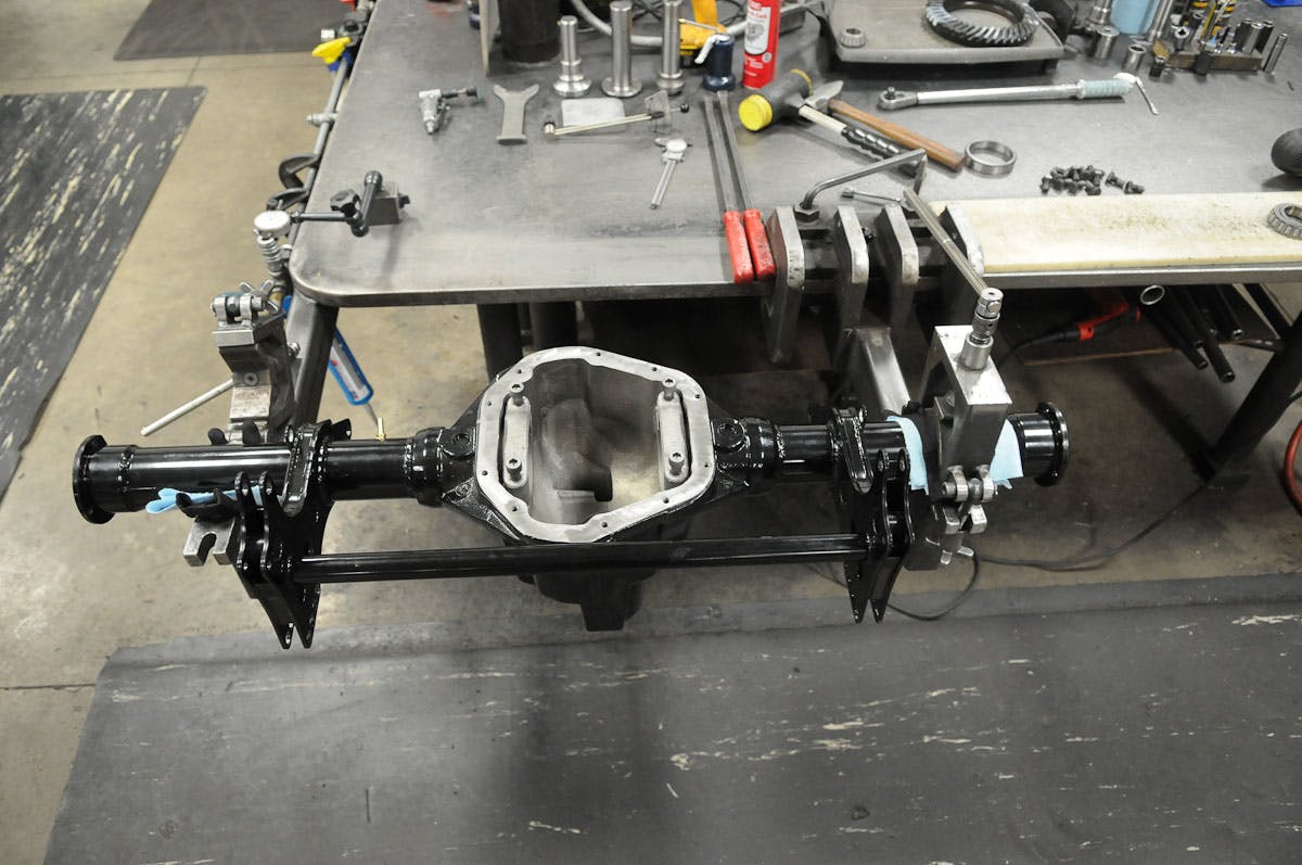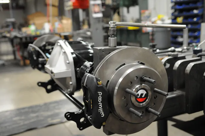 Muscle Pak housings come standard with drum brakes and a Posi, but this particular buildup is set to utilize an optional spool and Wilwood brakes. It also features a welded and braced four-link bracket setup.