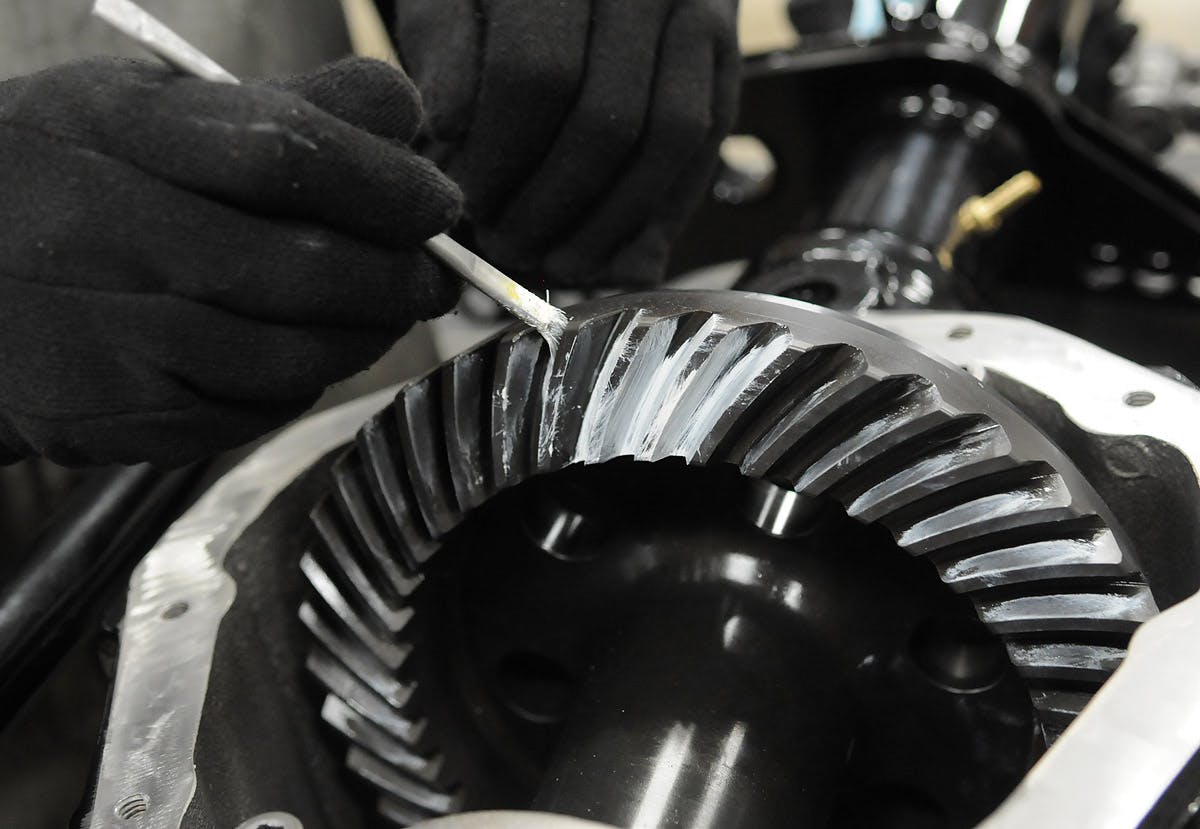 Backlash is the minute space that must exist between the contact areas of the ring gear and pinion. When the differential is spun, there’s a specific amount of space that it will turn before actually contacting the ring gear, and this is essential for a couple of reasons. Too little backlash will cause the pinion to jam into the ring gear and produce friction and heat that will lock the axles up. Too much backlash, however, will set the ring and pinion teeth too far apart and ultimately chip the edges of the teeth off under hard driving conditions.