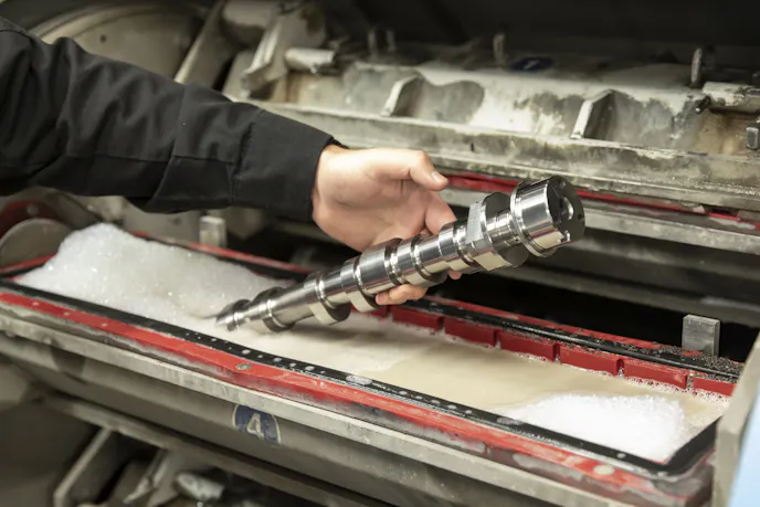 Bennett continues, “Additionally, MSE utilizes uniform pressure across the camshaft lobe face, reducing the surface waviness common with other finishing techniques, such as belt polishing. The resulting camshaft surface more evenly distributes load for increased durability. MSE also eliminates sharp edges and microscopic machining marks that typically result from the grinding process.”