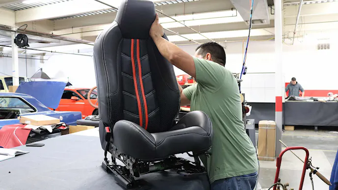 When it comes time to order an upholstery kit from TMI, the company will ask what type of stock seats your car currently has, and it sends the kit with matching installation points and velcro points that come with the stock seats to ensure a proper fit.