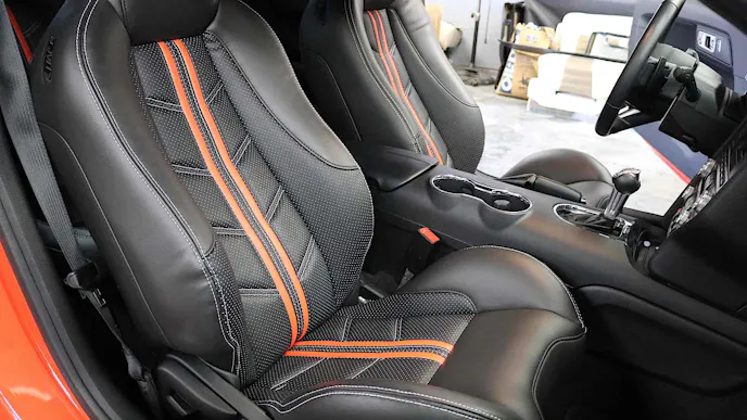 The color match was spot on and the sport-style posture that this new seat presented made the Competition Orange Mustang stand out in a crowd.