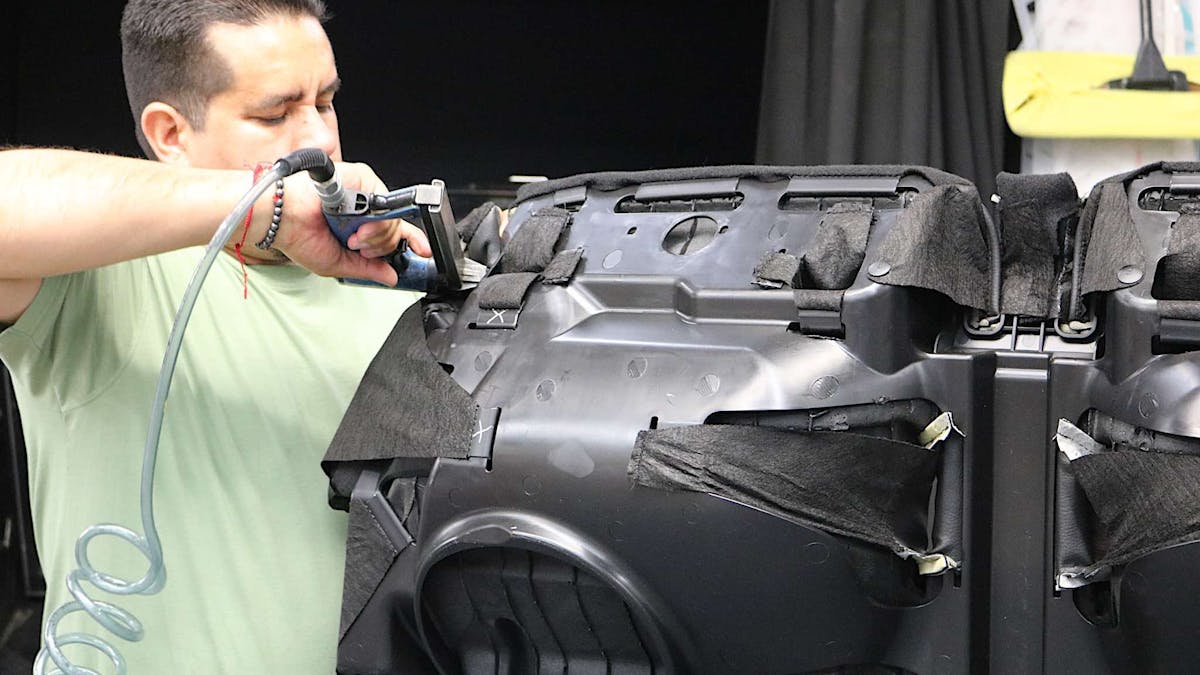 When we arrived at the TMI headquarters in Corona, CA on the install date, the team went right to work pulling the stock seats out of the Mustang and installing the new custom interior. The S550 kit comes with direct replacement foam inserts and new custom exterior leather or vinyl of your choice for the front seats. The rear seat upholstery uses the stock rear foam.