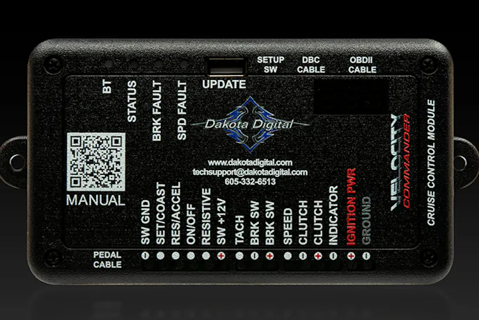 “The VCM-100 is a foolproof means of adding the convenience of cruise control to a vehicle with a swapped Coyote driveline,” Scott Johnson, Manager, Sales at Dakota Digital, said. “With a fully electronic throttle pedal used in most Coyote packages, a purpose-built product is required to interface with these sophisticated OEM electronics and provide the driver with proper operation at a common cruising speed.”